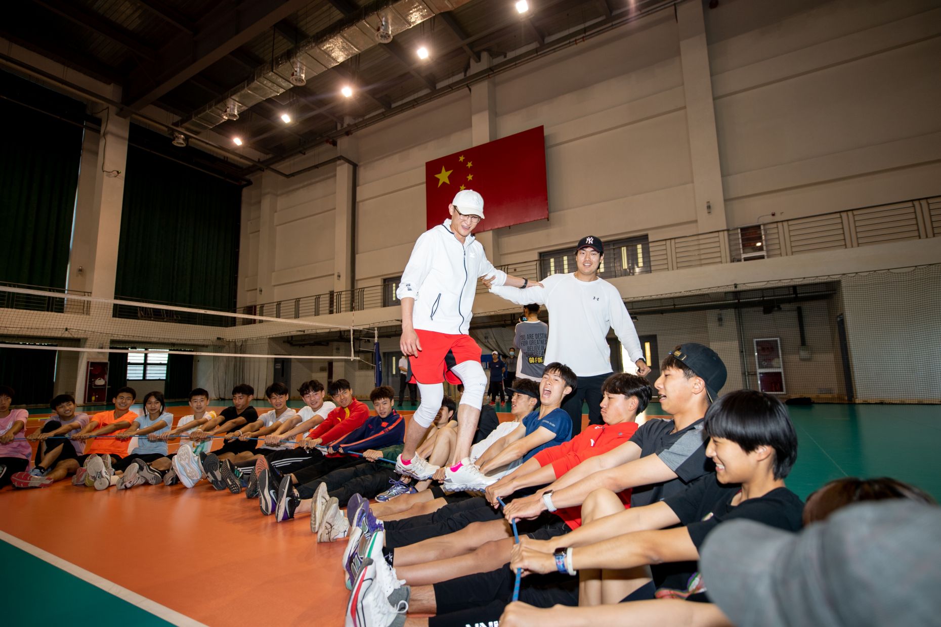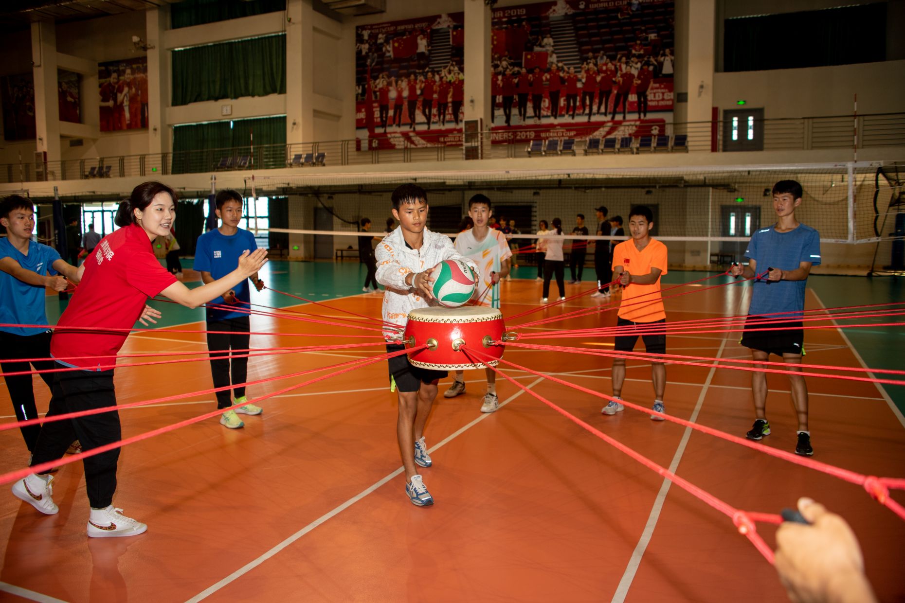 随后,威尼斯官网拓展中心师生带领集训队开展了拓展活动。