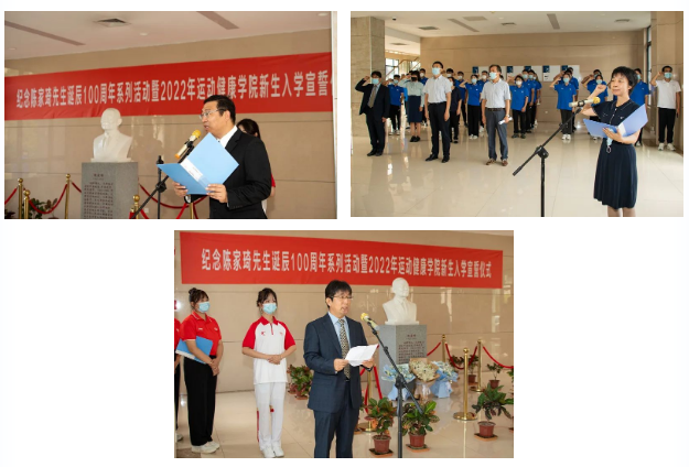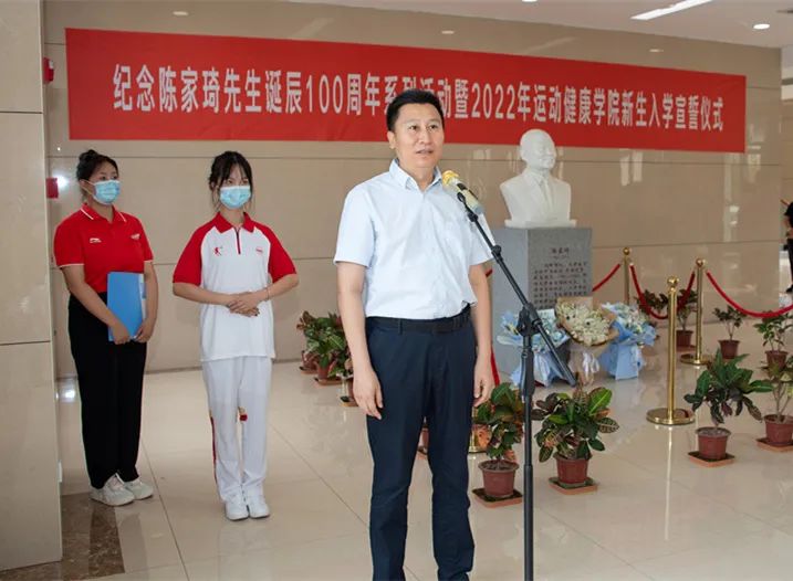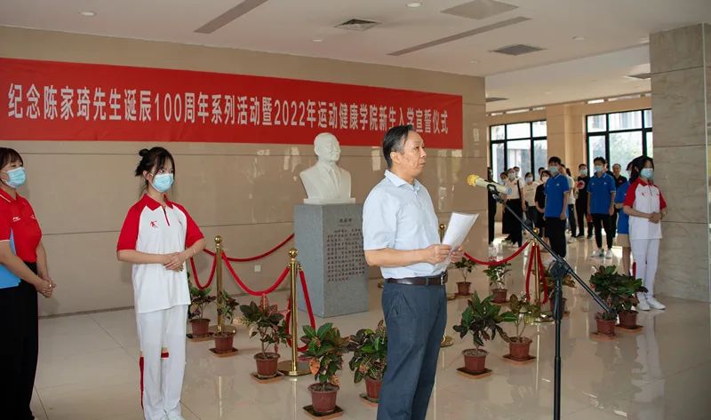 近日,运动健康学院开展纪念陈家琦先生诞辰100周年系列活动暨2022年运动健康学院新生入学宣誓仪式。党委副书记、院长张欣,9499www威尼斯原副院长张勇出席,运动健康学院副院长徐冬青、赵云罡,运动健康学院教师代表、2022级全体本科、硕士、博士学生参加。活动由运动健康学院党委书记郝建华主持。