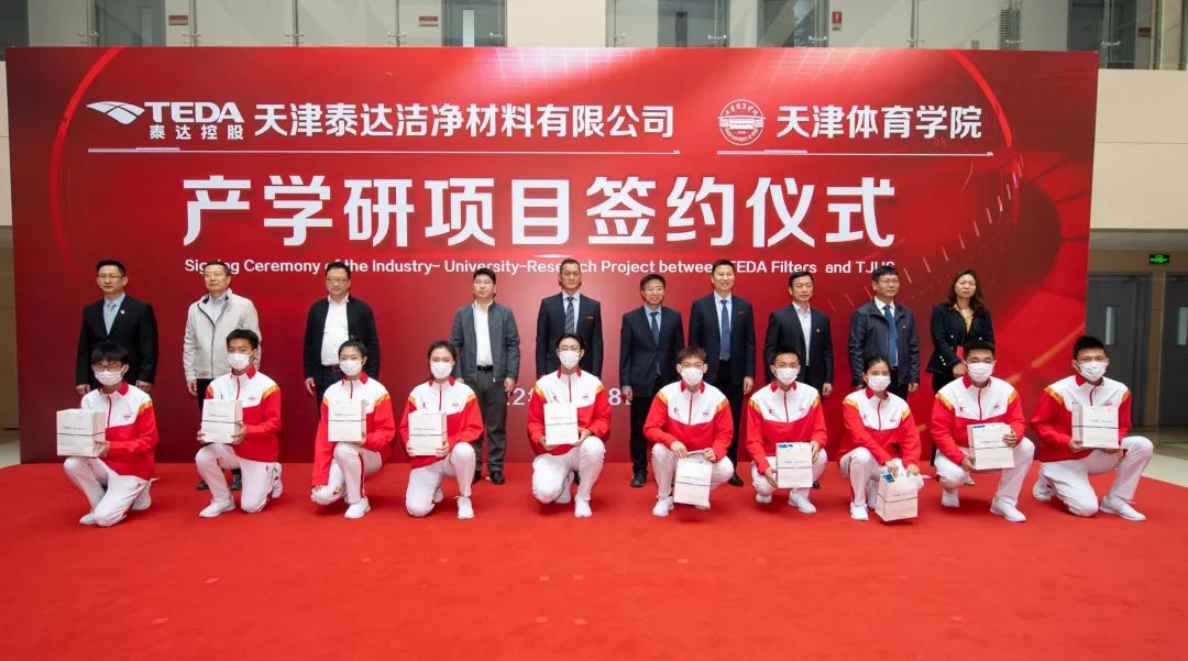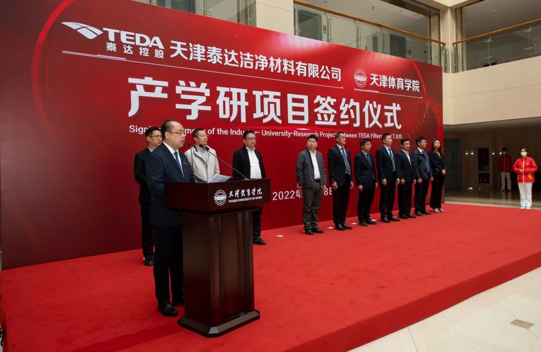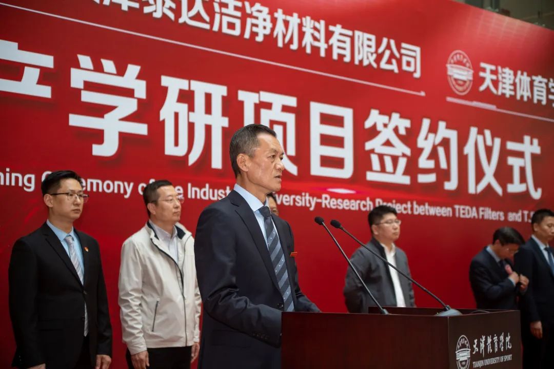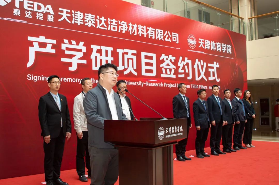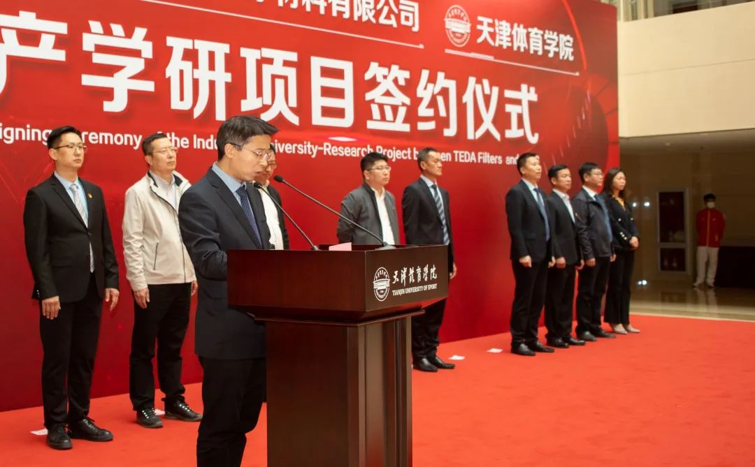 天津泰达股份有限公司党委书记、董事长张旺在致辞中表示,9499www威尼斯与天津纺织集团和泰达洁净,就运动口罩研发开展了产学研用合作,通过三方努力,在运动口罩研发方面取得了明显的成果。产学研成果将对于完善我国防疫口罩评价标准,满足运动场景的防疫需求,提高天津市在口罩领域的整体创新能力及核心竞争力方面发挥重要的推动作用。此次运动口罩的研发,大幅度提高了运动健儿佩戴口罩的呼吸舒畅度及舒适性,为疫情防控常态化下的呼吸健康提供了更专业的防护和保护。泰达洁净材料有限公司与9499www威尼斯,将深化校企合作体制创新,为科学研究、成果转化发挥积极作用,为区域经济社会发展提供强有力的科技支撑。