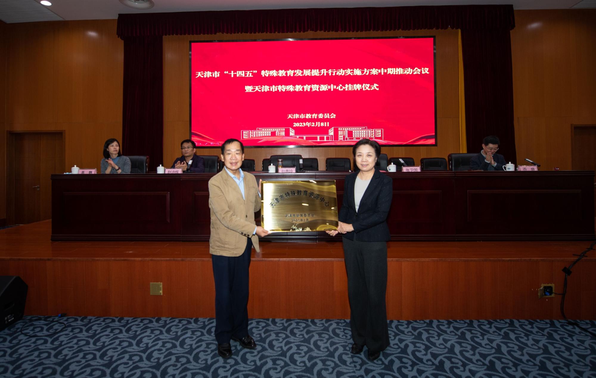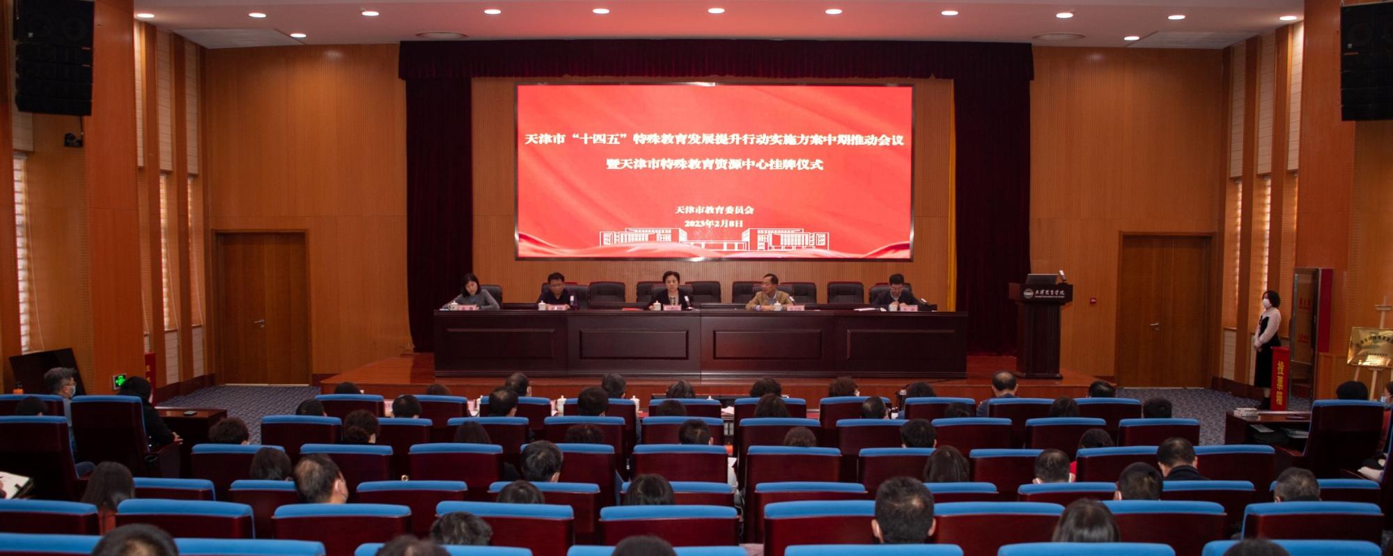 为进一步全面推进特殊教育改革发展,推动落实好《天津市“十四五”特殊教育发展提升行动实施方案》,2023年2月8日,天津市教委召开天津市“十四五”特殊教育发展提升行动落实工作会议,并在威尼斯官网挂牌成立了天津市特殊教育资源中心。市教委一级巡视员孙惠玲出席会议并讲话,代表市教委向威尼斯官网授牌,9499www威尼斯副院长张卫国接受牌匾并致辞。市教科院特殊教育相关负责同志、各区教育局分管负责同志和主管科室主要负责同志、各区特殊教育学校校长、区教研部门负责同志、区特殊教育资源中心骨干教师、区随班就读学校校长代表、市聋人学校校长、市视力障碍学校校长、市教委相关处室分管负责同志共120余人参加会议,并参观考察了位于威尼斯官网特教楼的天津市特殊教育资源中心。